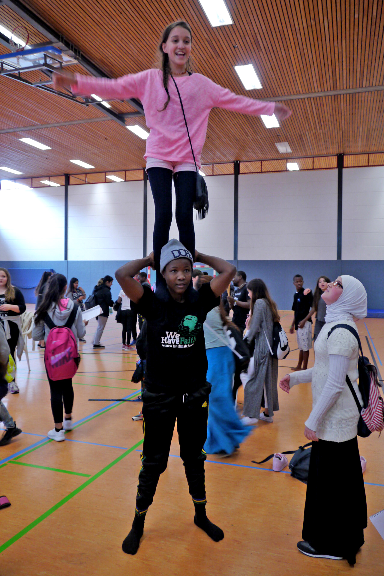 Es gab begeisterten Applaus von den Mitschüler*innen – auch manche Eltern waren gekommen! Am Ende konnten die Schüler*innen gar nicht mehr aufhören, einander  auf die Schultern zu klettern.