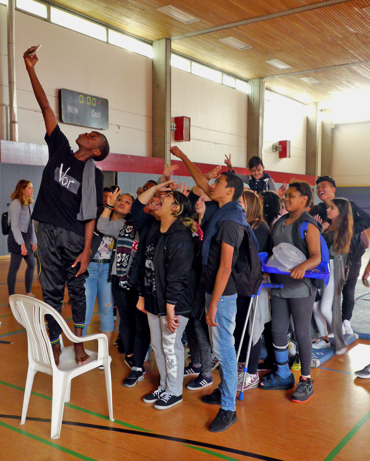 unbenannt-4Eine Woche lang haben knapp 100 Schüler*innen des 8. Jahrgangs sowie aus zwei internationalen Vorbereitungsklassen der Schule am See aus Hamburg-Steilshoop mit KCC in Akrobatik- und Tanzworkshops gelernt, gelacht, geübt und geredet. Am Freitag dann gab es in der Turnhalle eine Aufführung vor der ganzen Schule. Beeindruckend, was die Jugendlichen in diesen Tagen zustande gebracht haben!