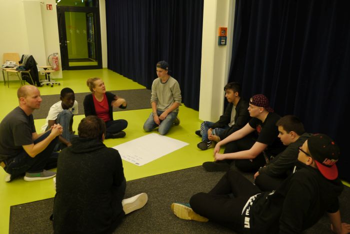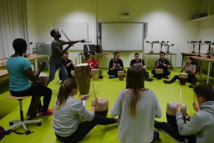 The Sosolya Undugu Dance Academy from Kampala / Uganda spent a week at the Stadtteilschule Bergdorf with class 10B to discuss about the climate change problems, ways to combat its effects and get to know each. The programs started from 8:00 a.m. – 4:00 p.m everyday. It started with a warm up and brain changes game like KAPUT, followed by discussions about the play and climate change effects. The students formed three groups: dancing, acting and drumming. Within this groups the students had to use creative methods to express the effects of climate change.