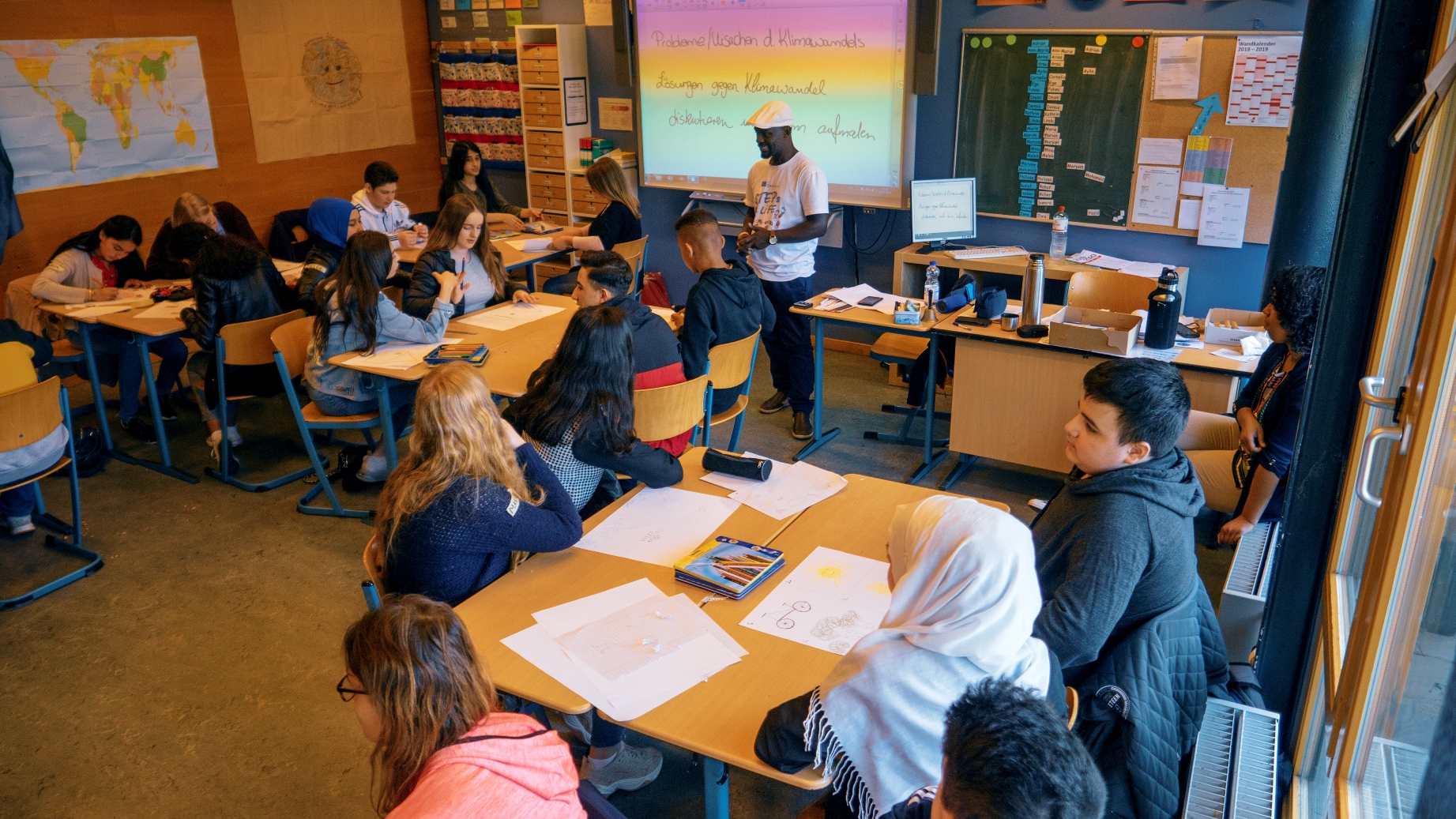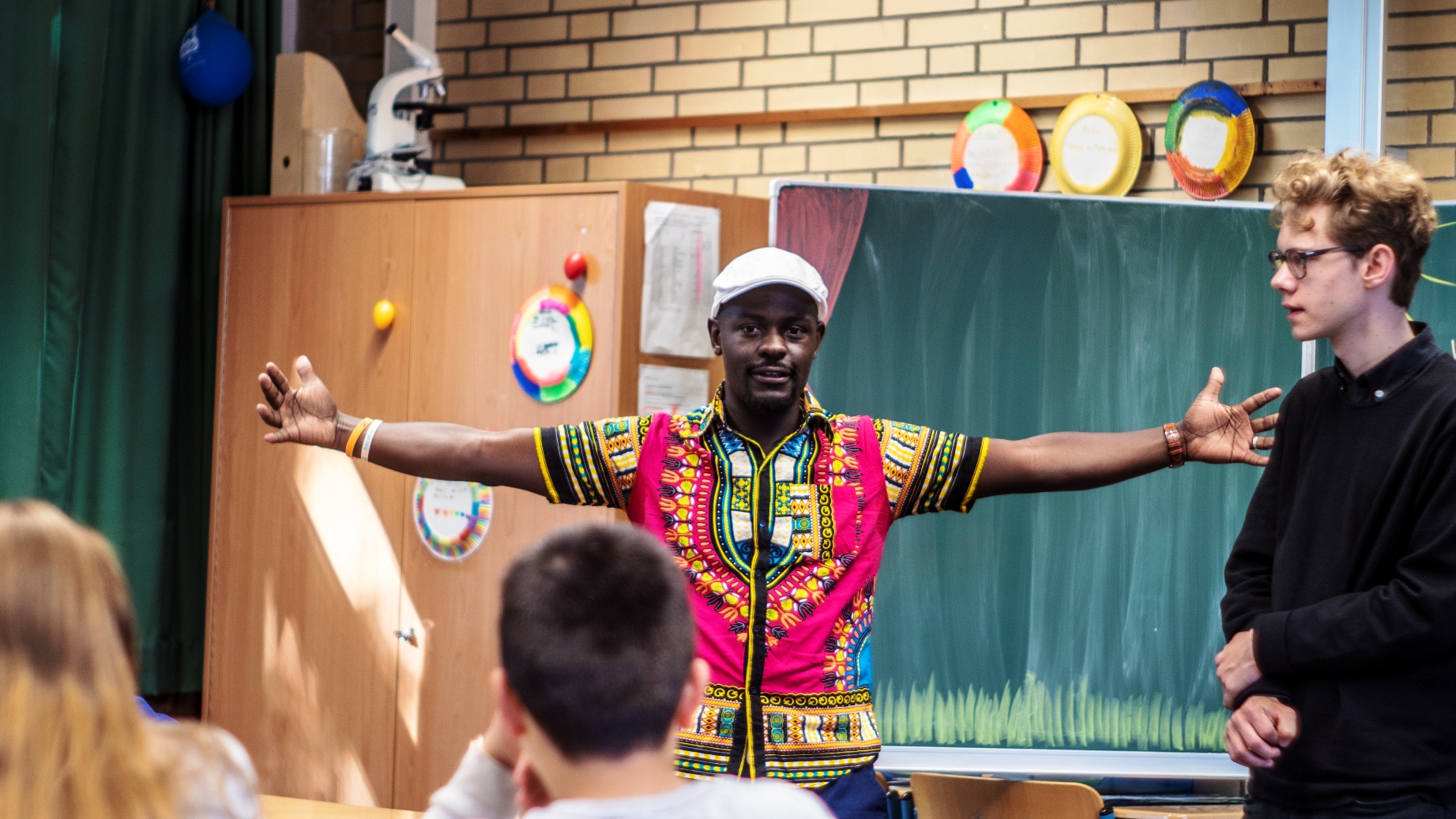 Sein Besuch ist Teil der Vorbereitungen der hiesigen Klassen auf die kreative Arbeit mit den jungen Künstler*innen aus Uganda ab August. Bagonza möchte die Schüler*innen kennen lernen, erfahren wie sie zum Klimawandel stehen und welche Ideen sie haben, um der Klimakrise entgegenzutreten.