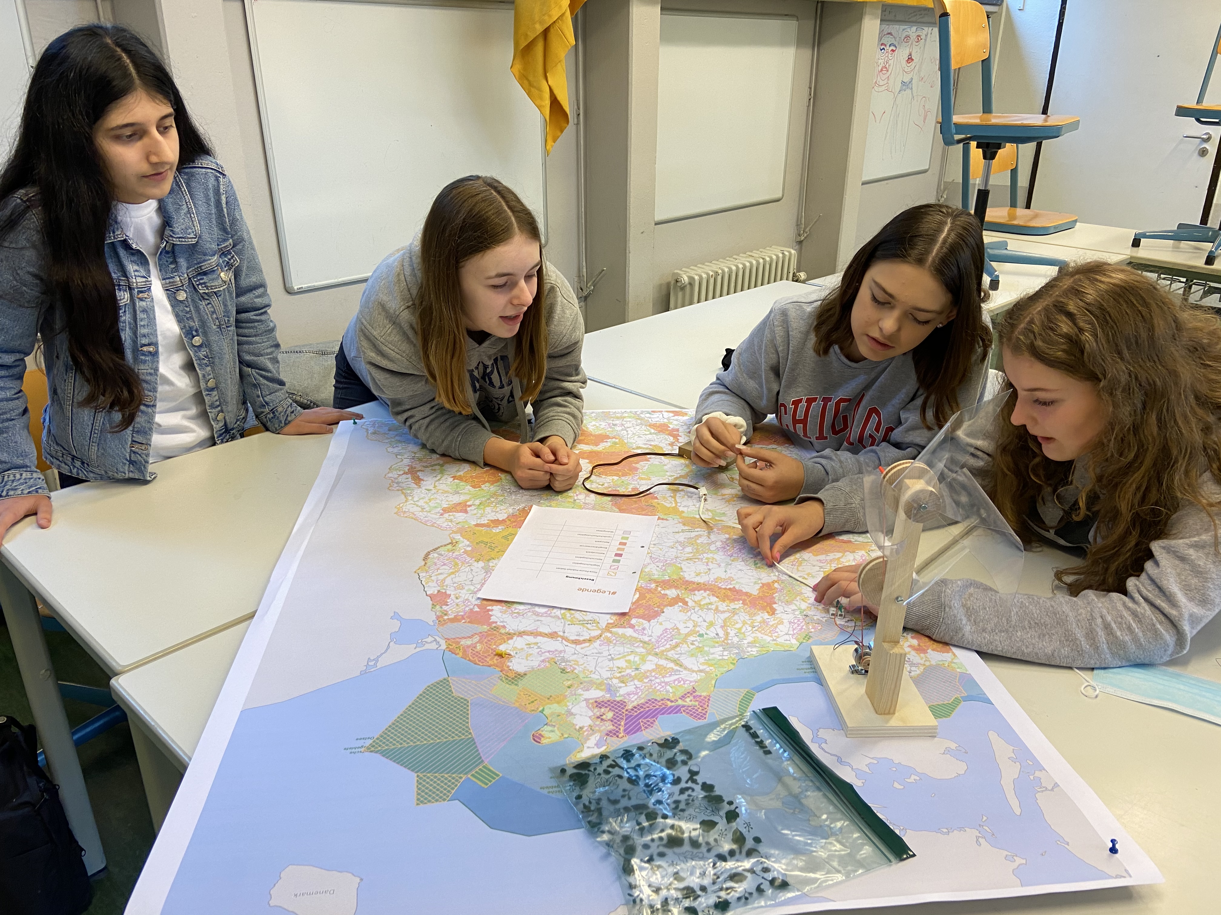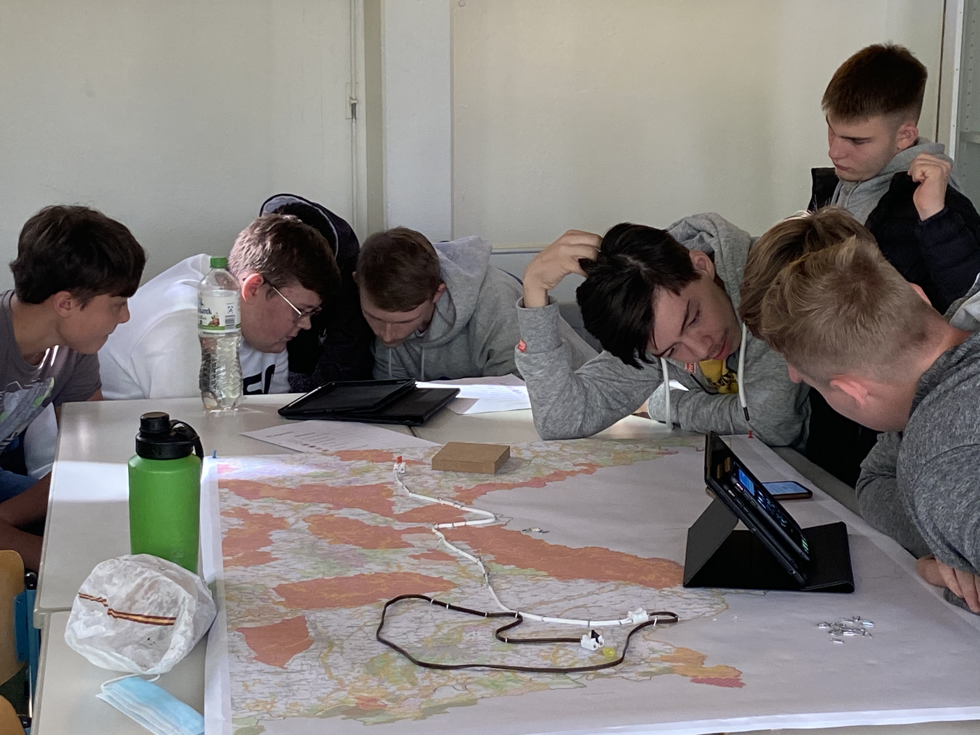 Nach den Sommerferien nahm die Klasse (mittlerweile 9d) im September im Rahmen des Bildungsprogramm Wetter.Wasser.Waterkant an einem Workshop über erneuerbare Energien und die Energiewende teil. Unter Anleitung von Expert*innen lernten die Schüler*innen die Herausforderungen der Energieversorgung in Deutschland kennen und bauten spielerisch ein eigenes Stromnetz aus.
