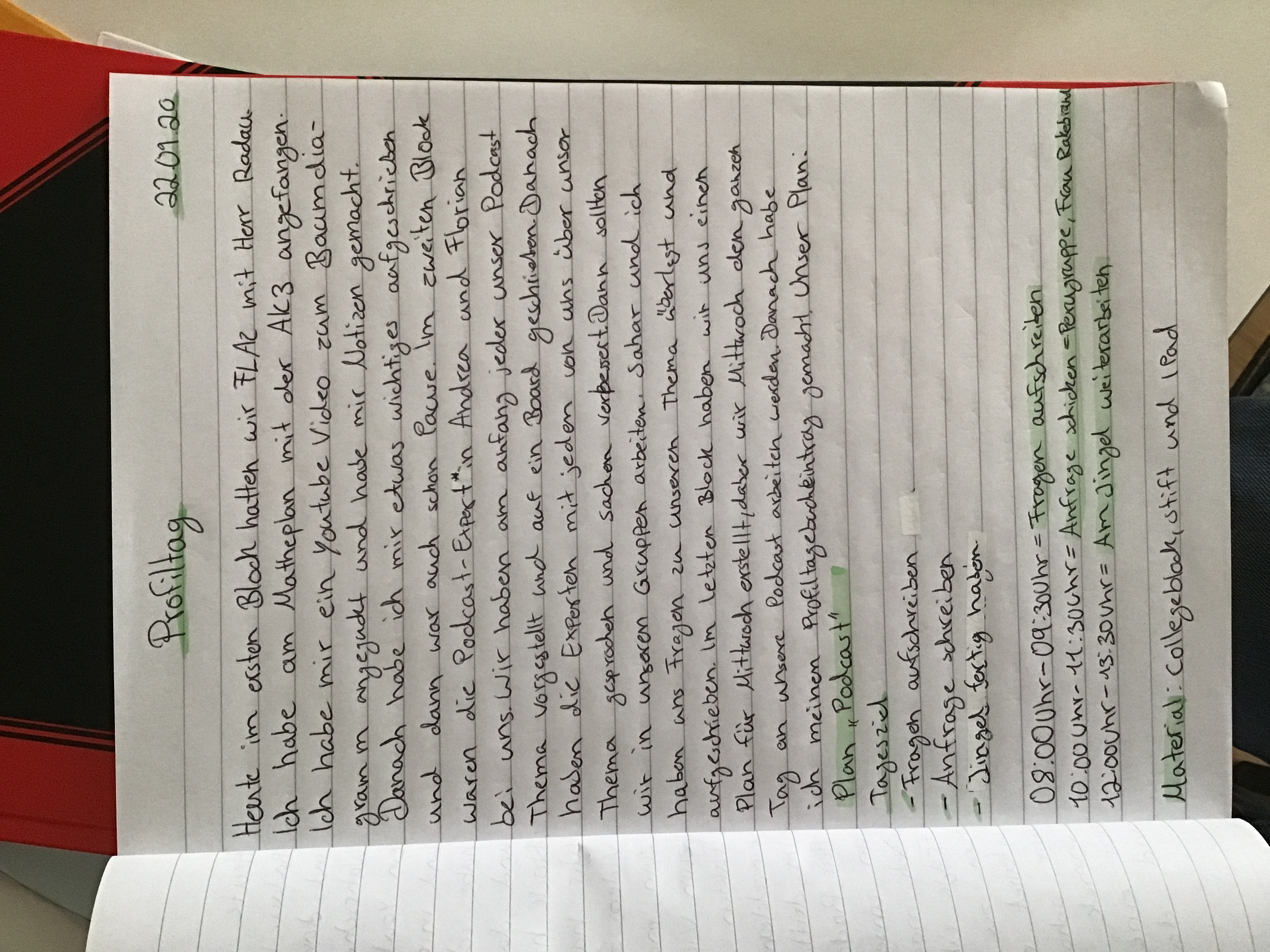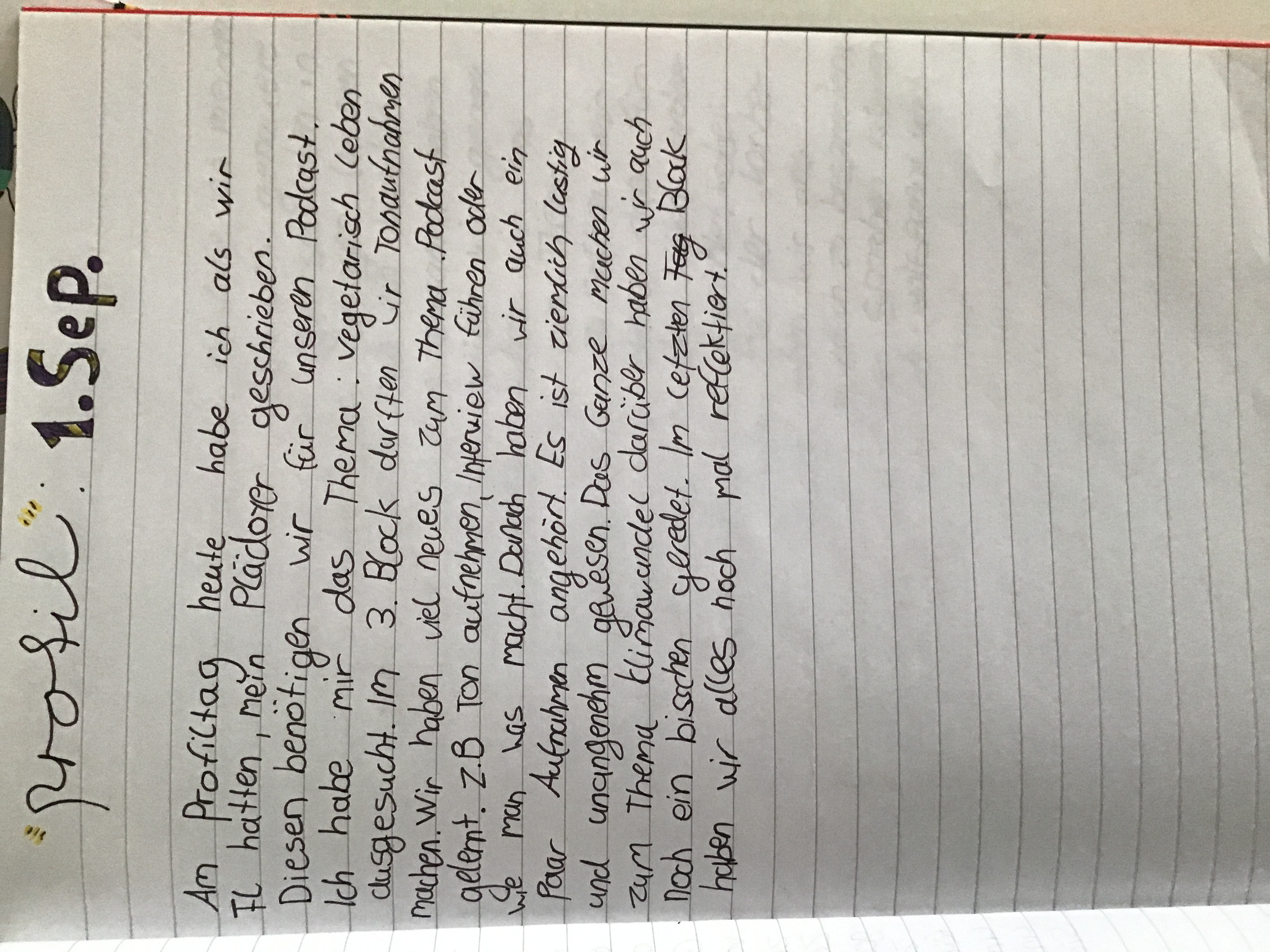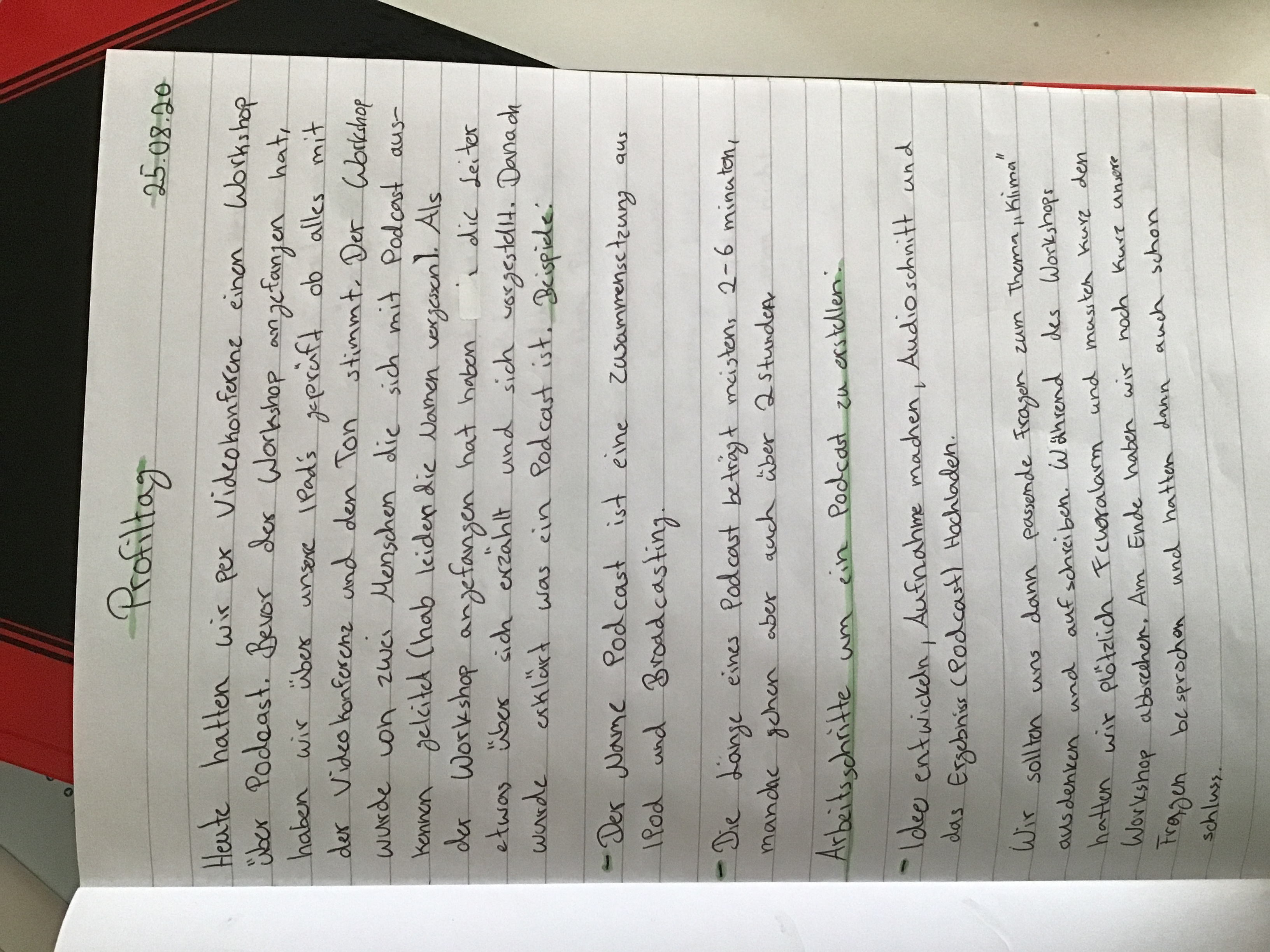 Ergänzend zum Podcast Workshop führen die Schüler*innen ein Projekttagebuch. Hier einige Einträge: