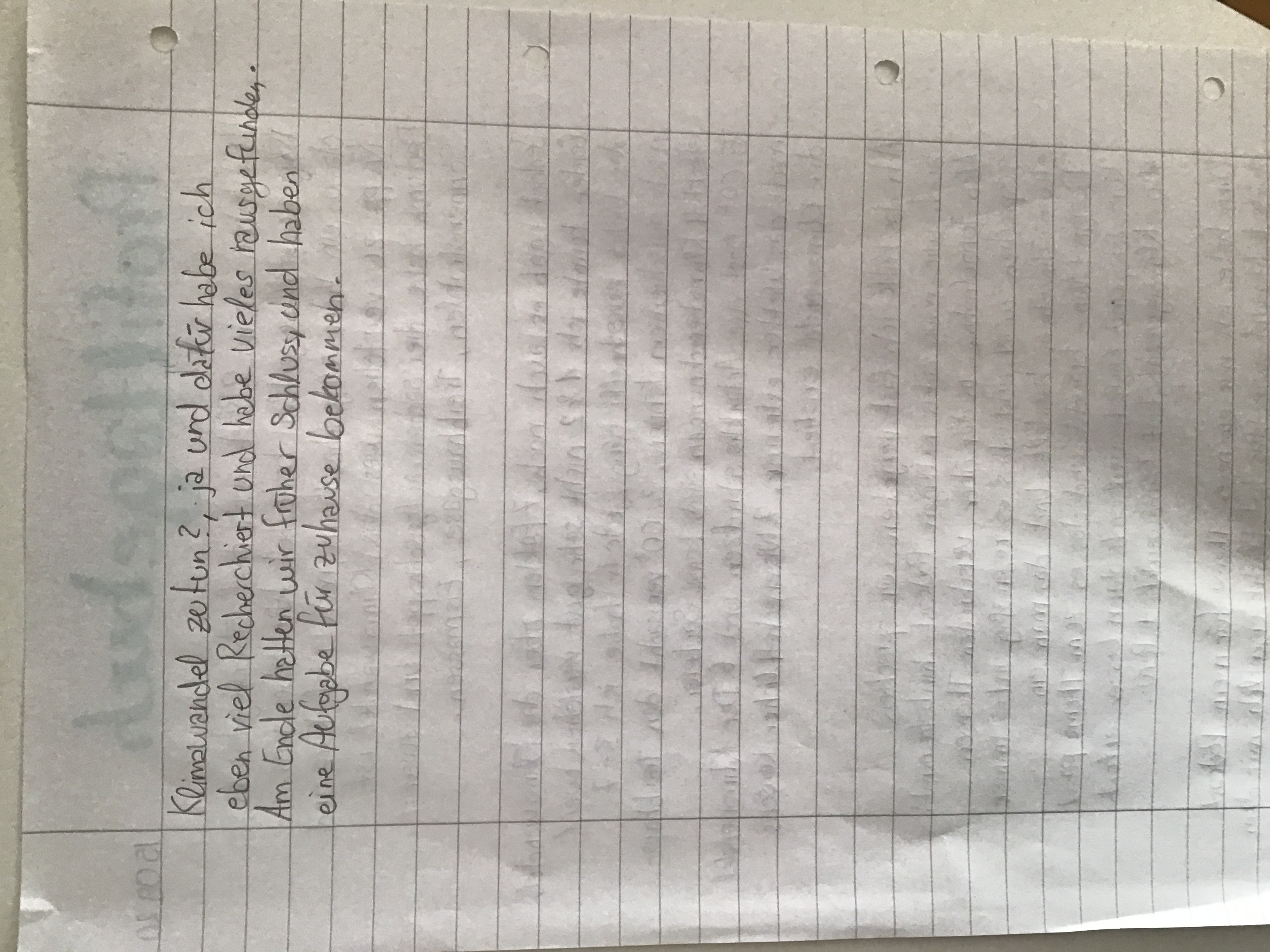 „Heute haben wir von den Podcast-Leuten ein richtiges Audio-Aufnahmegerät bekommen und haben uns damit beschäftigt. Wir sollten es ausprobieren und Fragen über den Klimawandel stellen. Wir hatten ein Mikrofon, ein Gerät, wo man es aufspielt, und Kopfhörer. Dann hat Andrea von den Radiofüchsen uns erklärt, wie man das Gerät benutzt und wie man es anschaltet. Es hat eigentlich viel Spaß gemacht und es war cool, ein professionelles Audiogerät zu benutzen. Bei dem Mikro sollte man Abstand haben, etwa so groß, dass eine Faust dazwischen passt. Wenn man zu nah ist, sollte man aufpassen, weil es sonst zu störenden Geräuschen kommen kann. Es gab in jeder Gruppe einen Reporter, einen Gerätehalter und eine Person, die interviewt wird. Am Ende wurden die Audios noch abgespielt und es war sehr neu und komisch, aber es ging…“