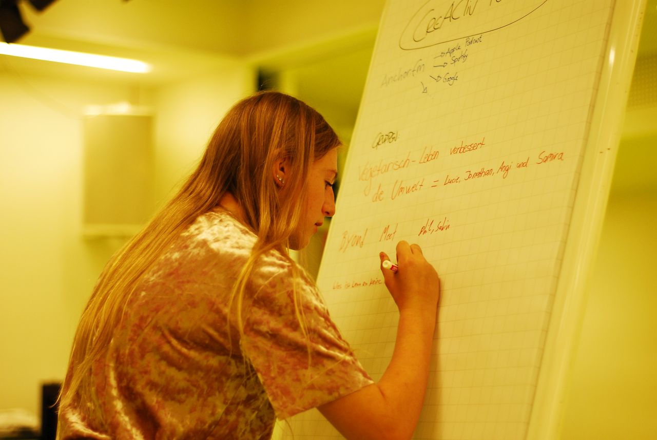 Ebenfalls im September startete die Klasse dann mit ihrem Vorhaben, einen Podcast mit Interviews und inhaltlichen Beiträgen für CREACTIV zu produzieren. Unterstützung bekamen sie dabei vom Team der „Radiofüchse“, den professionellen MedienpädagogInnen eines interkulturellen Hamburger Kinder- und Jugendmedienprojekt.