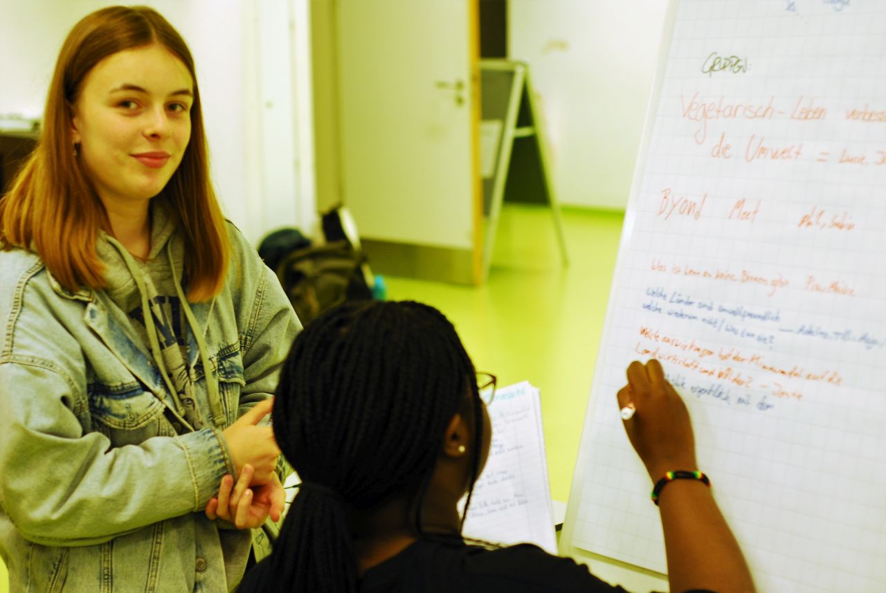 - Was können wir als Schule machen? Zum Beispiel an Kulturtagen Theaterstücke vorstellen, die mit dem Klimawandel zu tun haben. Oder eine umweltfreundliche Schule gründen. Oder auch andere Ideen mit der Schule besprechen.