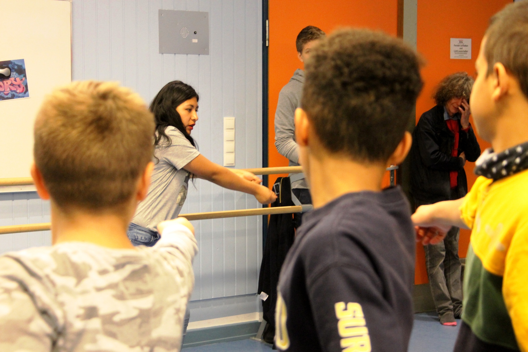 Am Dienstag arbeiten die Jungen und Mädchen mit ersten Theaterübungen der Tronos bereits auf die Abschlusspräsentation am Freitag hin. Es gibt wenig Scheu, das Spiegelbild des Gegenübers zu sein, an imaginären Gummibändern zu hängen oder übertriebene Bewegungen nachzuahmen. Das bereits durch Coral bekannte Spiel „Tungatatunga“ ist jedoch ein Highlight, dem sich selbst der Klassenlehrer nicht entziehen kann.