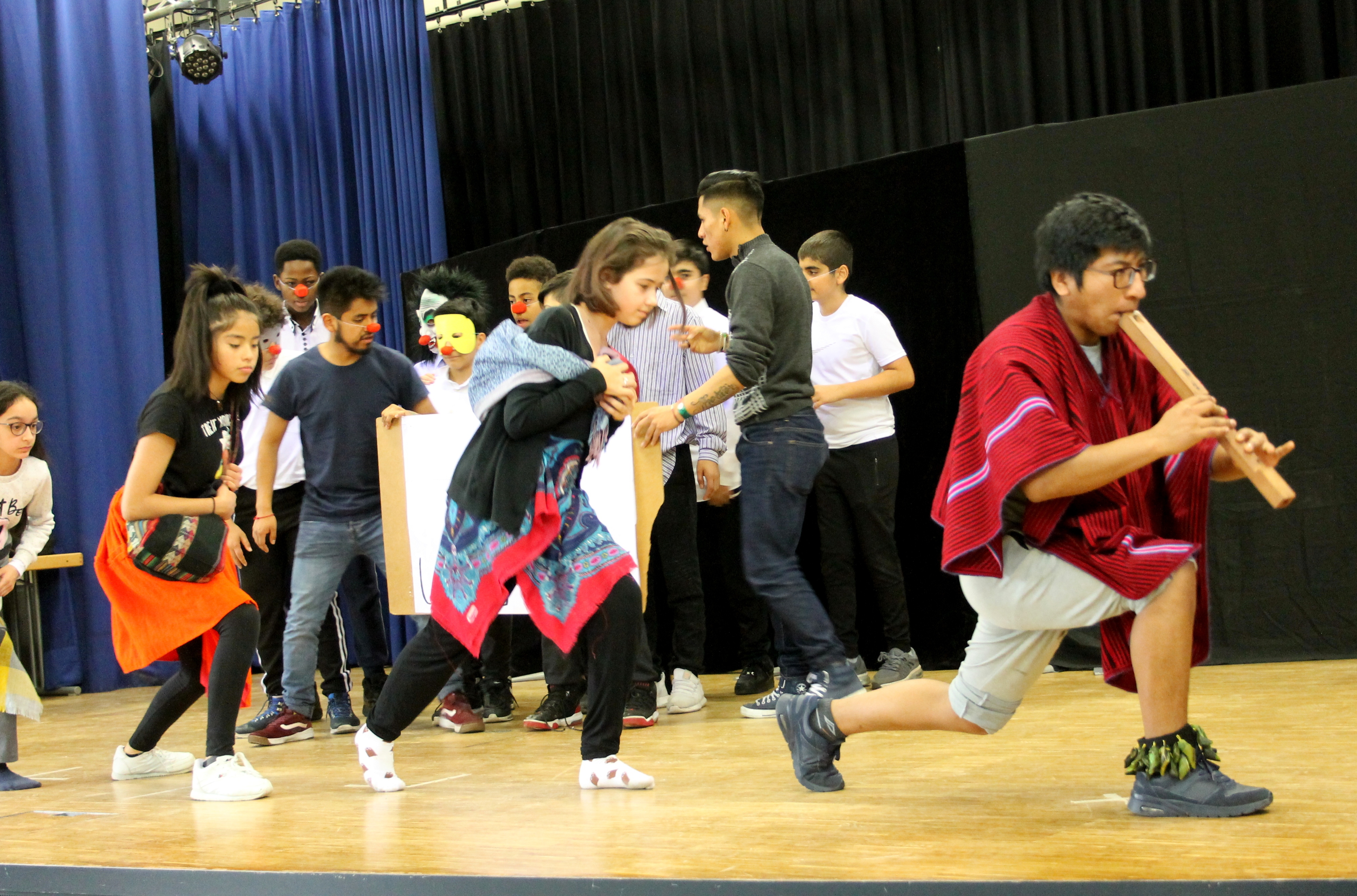 „Wir freuen uns sehr, dass ihr hier seid!“ Mit diesen Worten begrüßt der Schulleiter der Otto-Hahn-Schule das Teatro Trono, bevor dieses am Montag, den 04.11., mit seinem Theaterstück „Retorno a la Semilla – Zurück zu den Wurzeln“ die gesamte Aula begeistert.