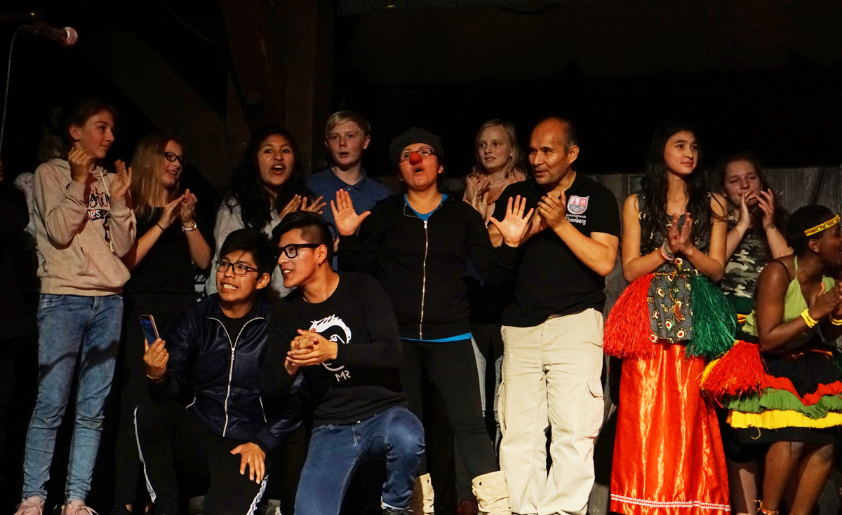 Alles in allem war es ein abwechslungreiches und künstlerisch hochwertiges über dreistündiges Programm, das mal wieder die hohe Qualität der jungen Künstlergruppe bewies und die teilweise aus ganz Deutschland angereisten Schüler*innen, Gastfamilien und Förderern der KinderKulturKarawane zu begeistertem Applaus hinriss. Nach vielen Fotos und einem tränenreichem Abschied versprachen sich alle, in Kontakt zu bleiben und sich ganz bald einmal wiederzusehen: in Hamburg, in Uganda oder anderswo.Herzlichen Dank an alle jungen Künstler*innen und ihre Gruppenleiter, an die Tourbegleiter*innen und Gastfamilien, die Lehrer*innen und Schüler*innen. Gute Heimkehr nach Bolivien, Uganda und Indien: wir vermissen euch jetzt schon!