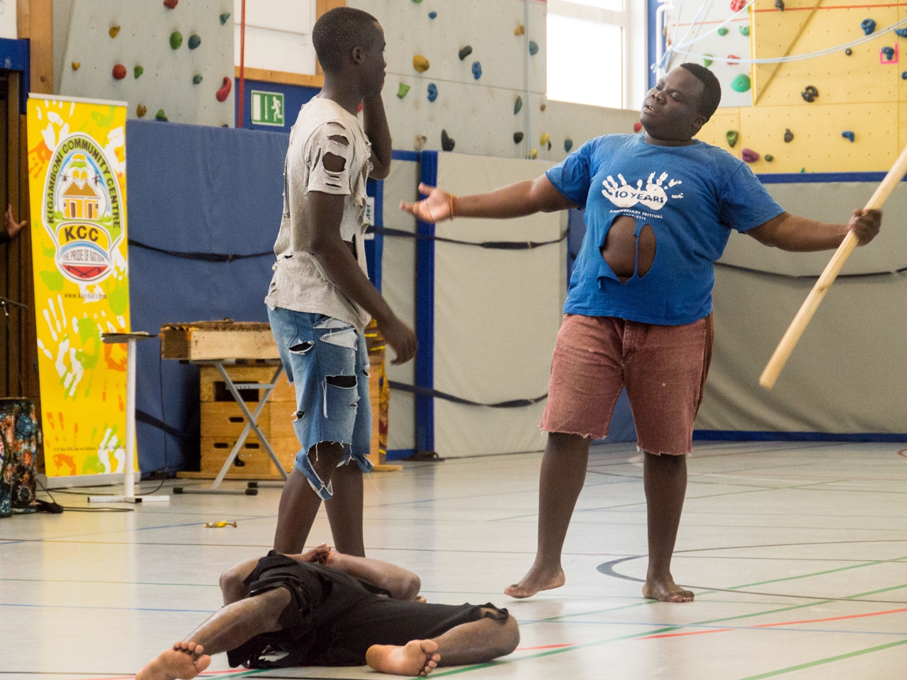 Mit ihrer furiosen Tanz- und Akrobatik-Show „Mama Earth“ startete KCC am vergangenen Montag in der Stadtteilschule Eidelstedt ihren dreiwöchige creactiv-Parcours in Hamburg. In der Show sprechen sie in verschieden Szenen mal auf dramatische, mal humorvolle Weise unterschiedliche Umwelt-, Klima- und Sozialthemen aus dem tansanischen Alltag an wie z.B. den Umgang mit Müll, Korruption oder das Abholzen von Bäumen für Brennholz (hier kann eine Beschreibung der Show Mama Earth heruntergeladen werden).