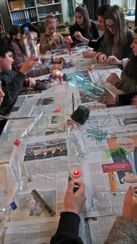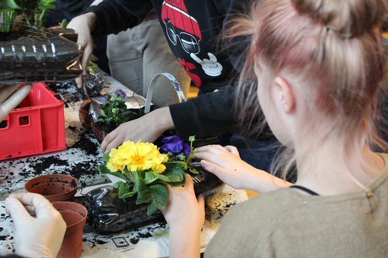 Der „Pflanzen“-Workshop am 4. Tag war dann nochmal ein Höhepunkt: während die einen alte PET-Flaschen mit Cutter und erhitzten Stechbohrern zu Pflanzgefäßen umarbeiteten, mit Erde füllten und mit vie