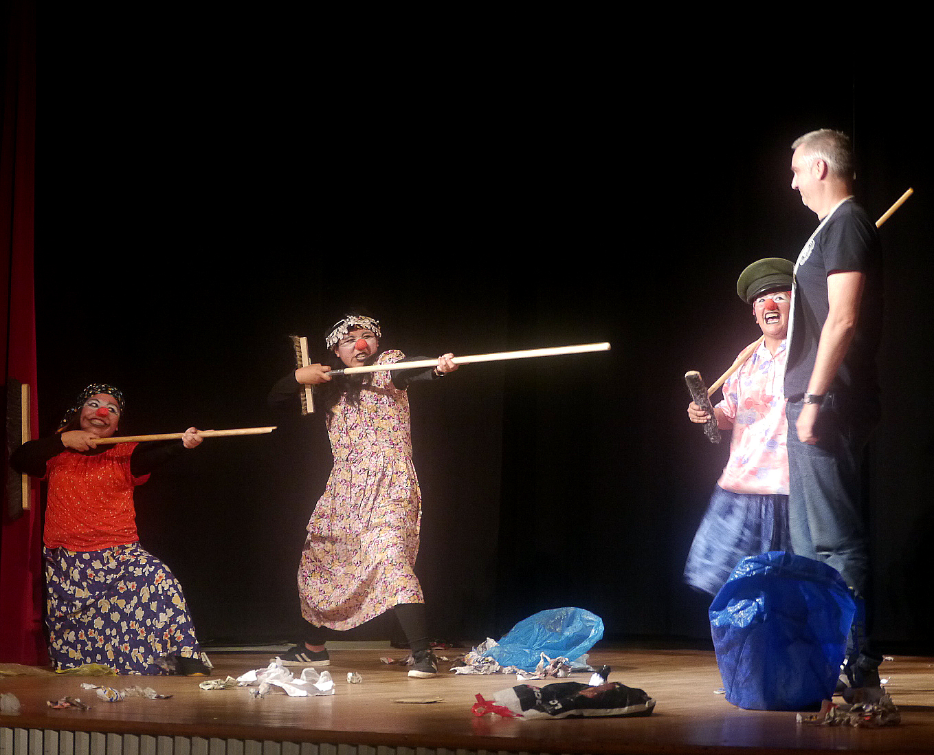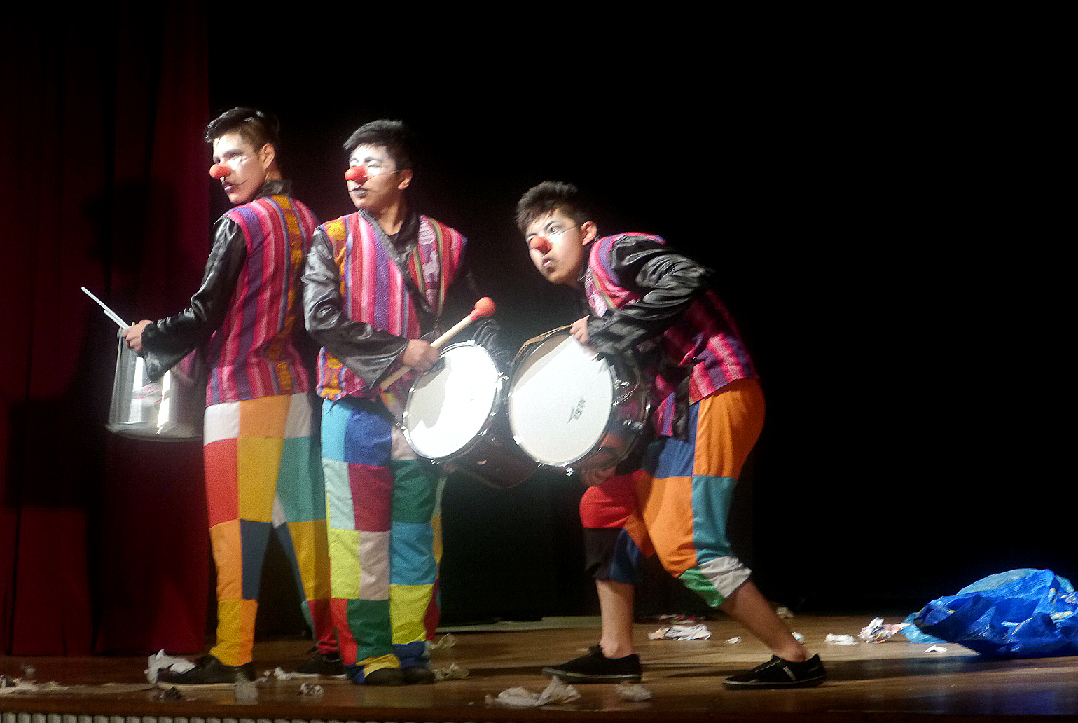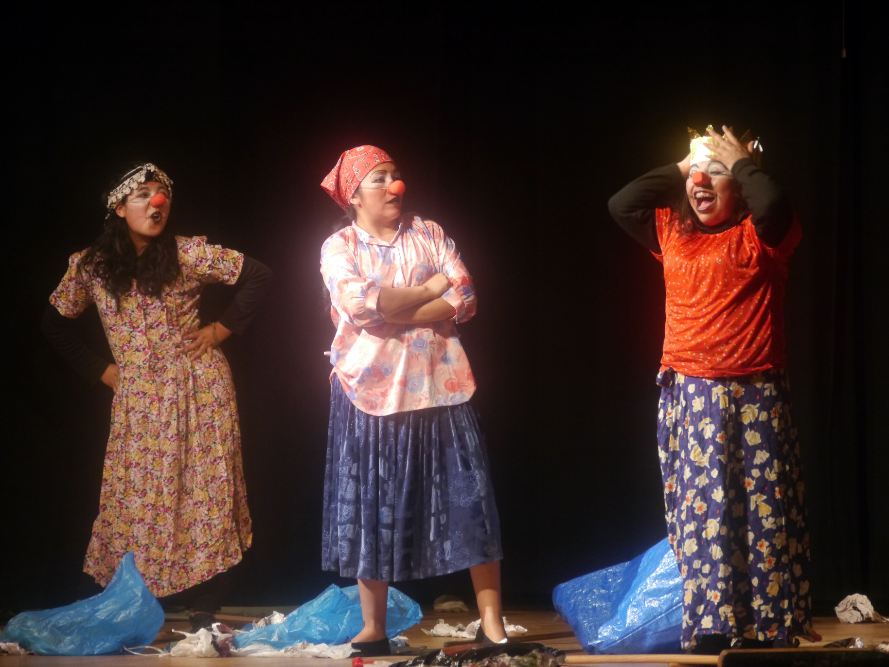 das Denken, so erklärten die jungen Künstler*innen aus El Alto, funktioniert nicht ohne Einbezug des ganzen Körpers. Im Gegenteil, erst müsse sich der Körper vom hierarchischen und autoritären Denken befreien, um sich wirklich frei und kreativ ausdrücken zu können. Die Schüler*innen lernten zu verstehen, welche wichtige Rolle Humor, Einfallsreichtum und Fantasie beim Vermitteln auch schwieriger und inhaltschwerer Botschaften spielen und wie mit nur wenigen Requisiten und sparsamen Worten ein Anliegen in Szene gesetzt werden kann.