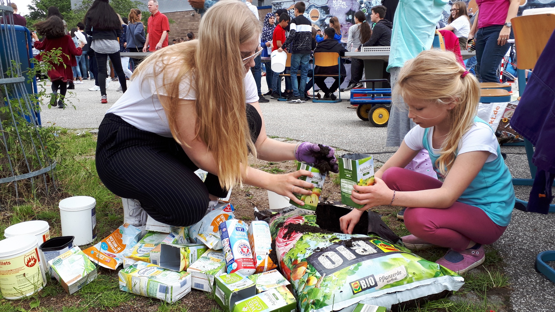 Neben vielen kulinarischen Angeboten auf unserem Schulfest war unsere Pflanzaktion ein kleines Special, über das sich viele Kinder freuten – und außerdem war es ein Beitrag zum Natur- und Klimaschutz!