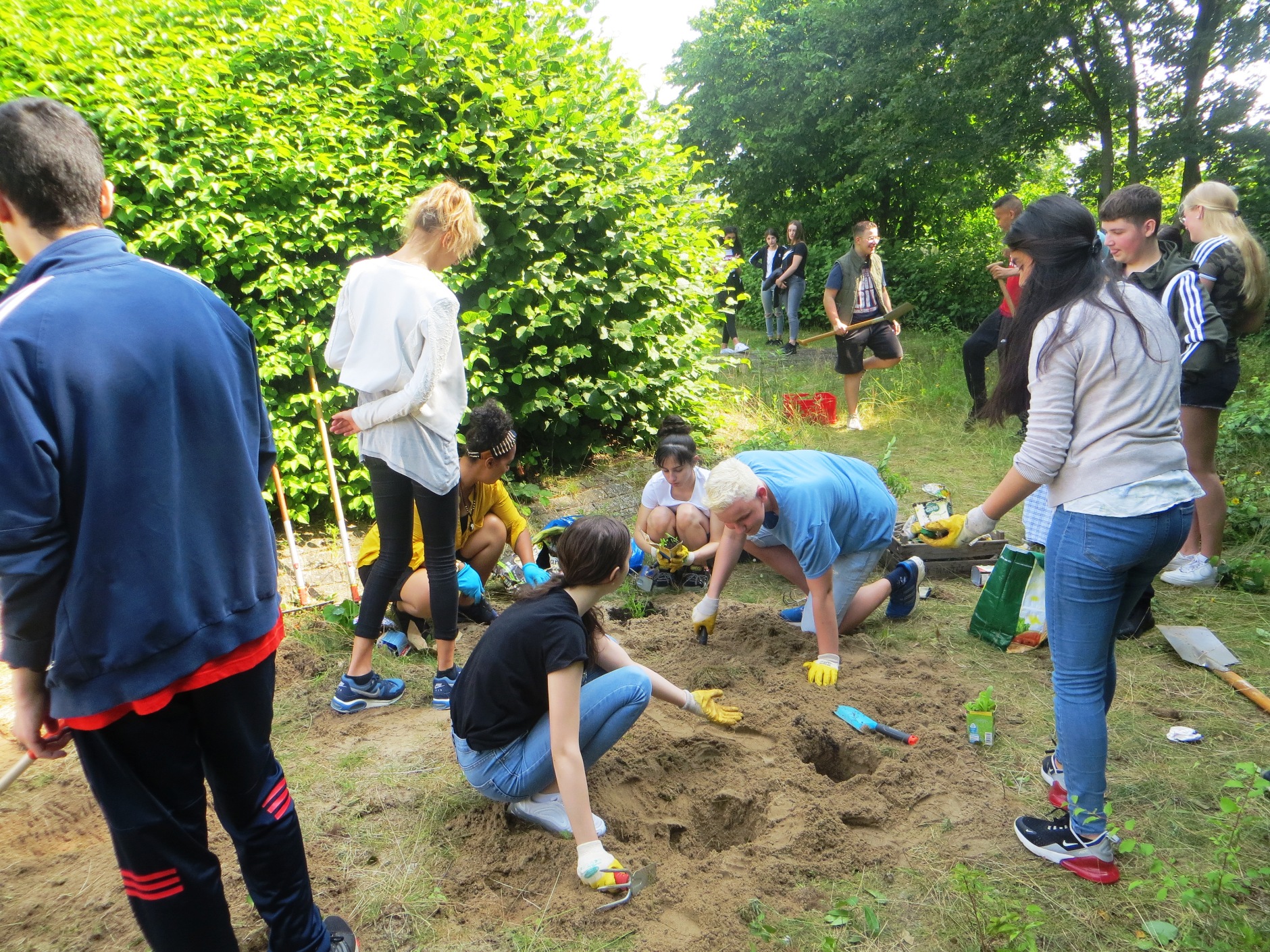 Kurz vor Beginn der Sommerferien im Juni pflanzten wir dann unsere Wildblumen im Schulgelände auf einer Fläche mit sandigem Boden ein. Dort soll im kommenden Frühling eine Wildblumenwiese entstehen! Somit leisten wir einen kleinen Beitrag zum Erhalt der Bienen, Schmetterlinge und Insekten und hoffen, er findet viele Nachahmer*innen!