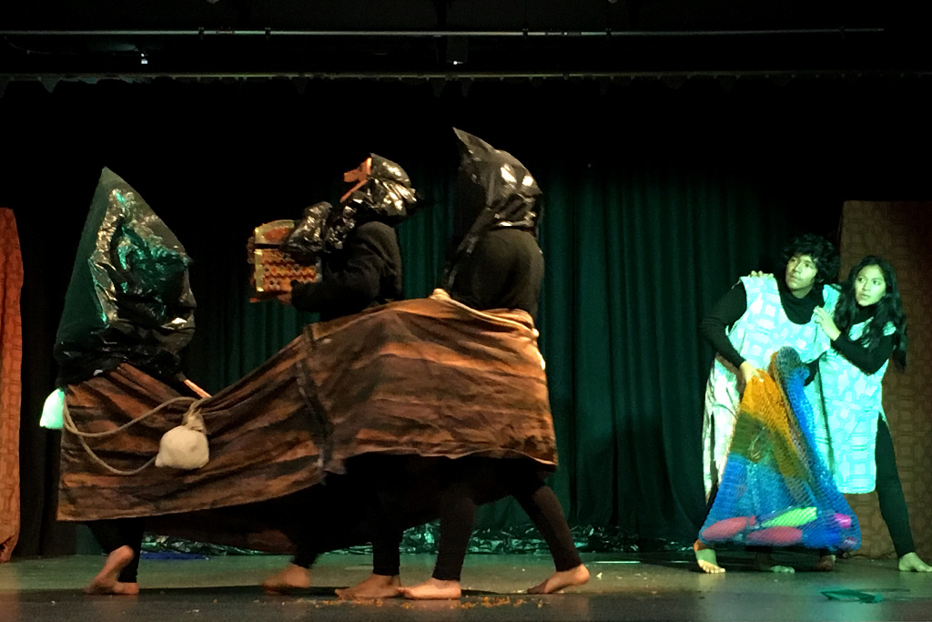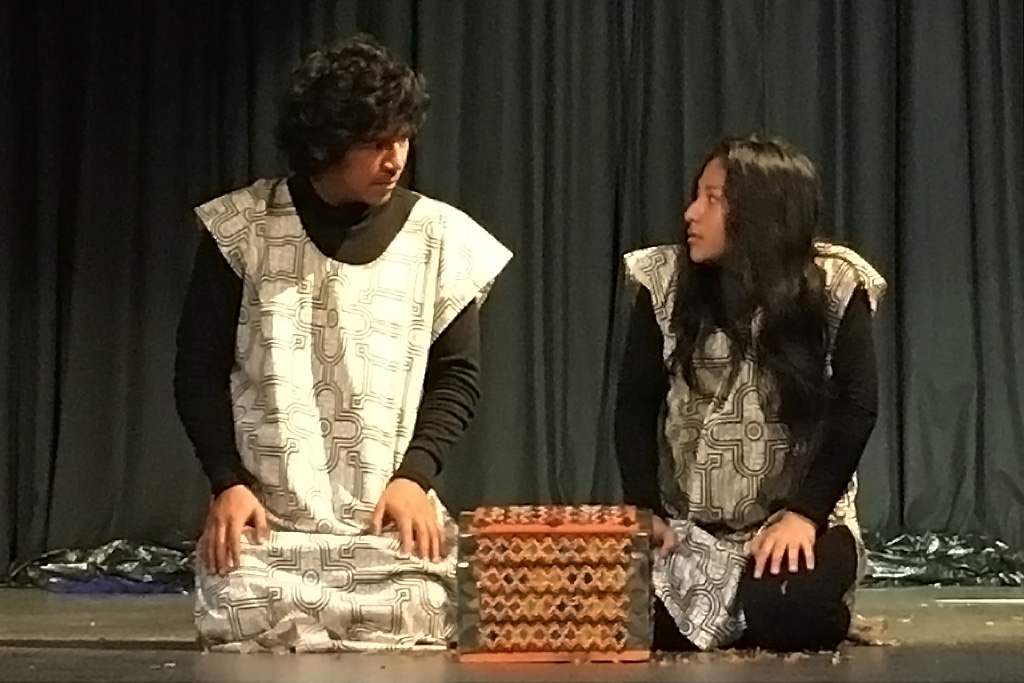 „Als die Sonne sich mit dem Mond vereinte, entstand eine große Dunkelheit und Chaos brach aus…“ So heißt es in der Legende von Oshe (Mond) und Bari (Sonne), einer Erzählung der indigenen Shipibo-Conibo aus dem peruanischen Regenwald. Diese Geschichte von der ersten Sonnenfinsternis, die das natürliche Gleichgewicht der Erde bedrohte, ist die Grundlage der furiosen Bühnenshow, mit der Arena y Esteras am gestrigen Montag im Gymnasium Lohbrügge die erste creactiv-Woche in Hamburg startete.
