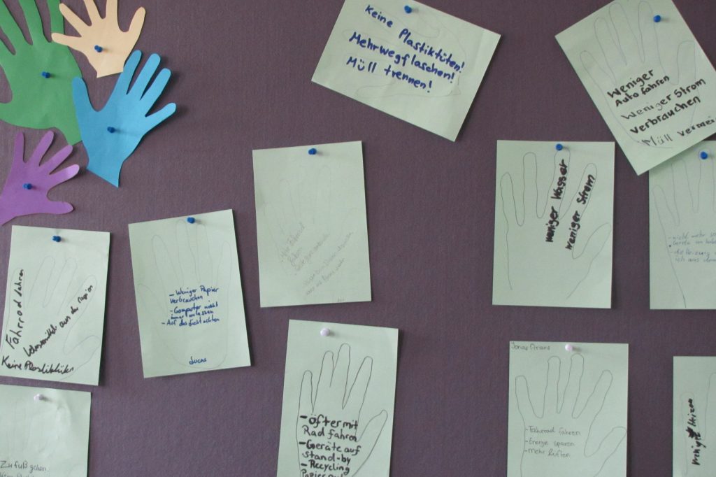 Fakten zum Klimawandel, das Weltverteilungsspiel, der ökologische Fußabdruck von jedem, ein Klimacheckertest und ein Klimasalat standen auf dem Programm. Auch einige Ideen, was jede/r selber machen kann, um seinen ökologschen Hand Print zugunsten der Erde zu vergrößern, wurden am Ende zu